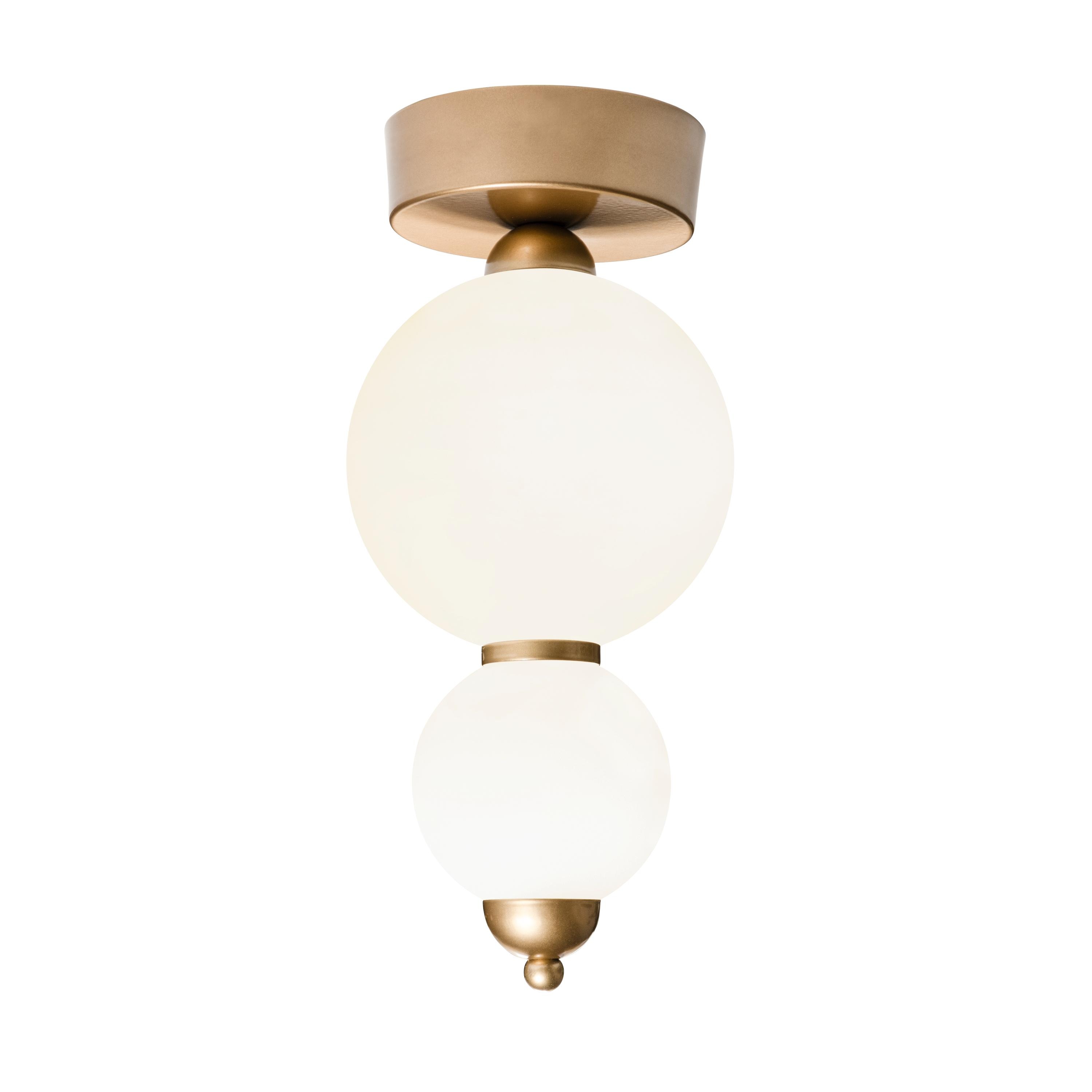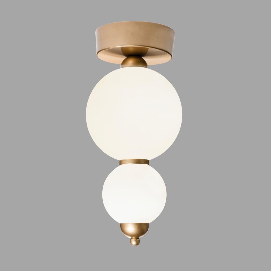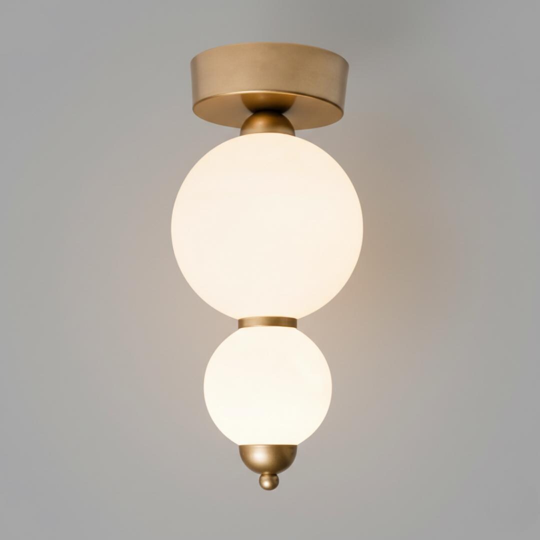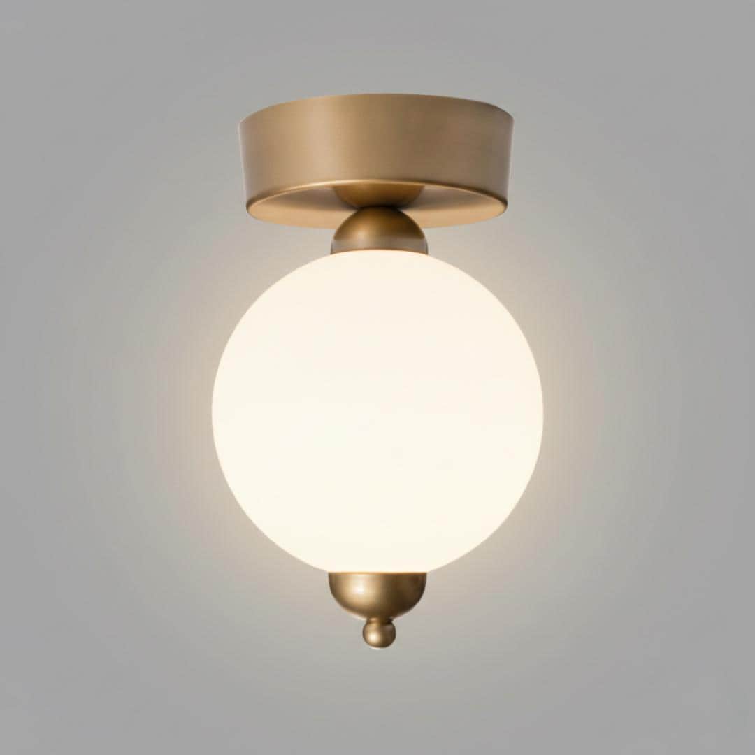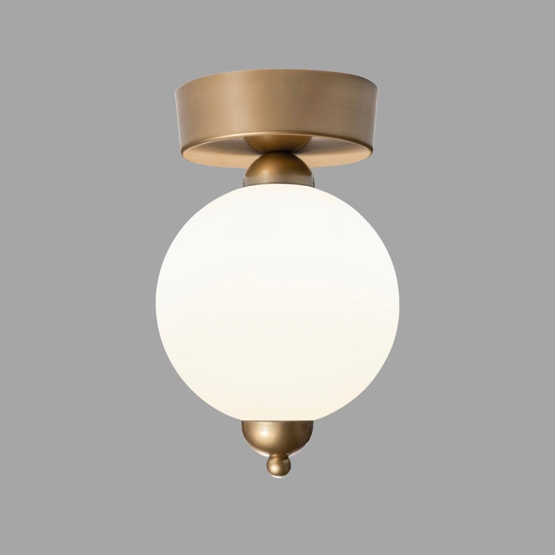 The Custom Globe Flush Mount Ceiling Light is a modern opal glass plafonnier designed for low ceilings, hallways, bedrooms, bathrooms, kitchens, and contemporary interiors. This ceiling-mounted lighting fixture combines clean geometry with soft diffused illumination, making it ideal for spaces where pendant lighting is not suitable.